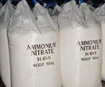 Nitric acid and ammonia are used to make ammonium nitrate. This material is a good fertilizer component because it has a high concentration of nitrogen. The two materials are mixed together in a tank and a neutralization reaction occurs, producing ammonium nitrate. This material can then be stored until it is ready to be granulated and blended with the other fertilizer components.